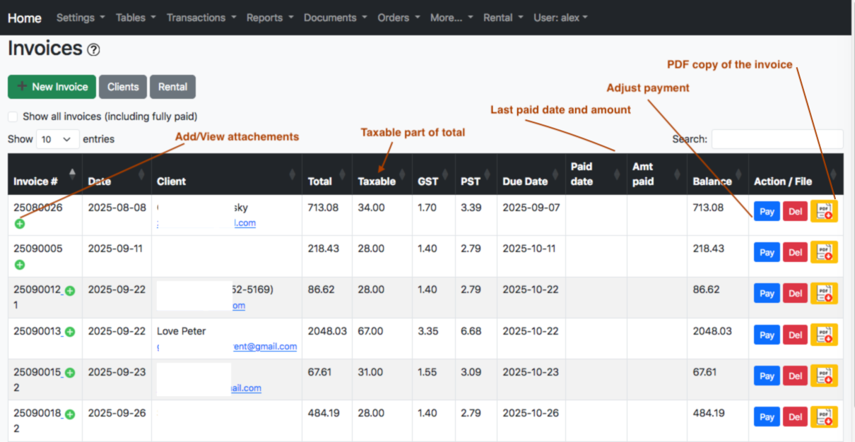 Please use SEARCH to locate your invoice by Client, Invoice No, etc.